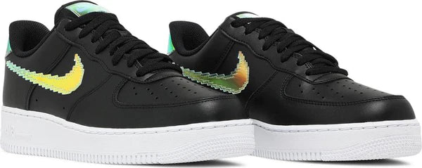 O Nike Air Force 1 Low ‘Iridescent Pixel’ trata o ícone do tênis com uma atualização de design, destacada por elementos de marca atualizados que se destacam em um pano de fundo de couro preto. Um efeito metálico iridescente é aplicado à etiqueta da língua em TPU e à aba do calcanhar, ambas marcadas com a marca Nike pixelizada. A assinatura Swoosh do tênis é processada de forma semelhante em forma pixelizada e revestida com um acabamento iridescente multicolorido. A composição dinâmica na parte superior é contrabalançada por uma sola de borracha branca sólida, com amortecimento Nike Air no calcanhar para maior conforto.