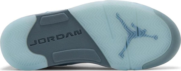 O Air Jordan 5 Retro 'Blue Bird' trata a silhueta retrô com uma reforma vibrante. Um tom energético de azul é executado em uma parte superior de camurça decorada com detalhes AJ5 padrão, incluindo travas de renda, ilhós de TPU moldados e rede transparente no painel lateral. Um Jumpman azul é bordado no topo de uma língua refletiva prateada, complementando os detalhes de dentes de tubarão prateados na entressola de poliuretano. Sob os pés, uma sola de borracha azul-gelo apresenta um padrão de tração em espinha de peixe para máxima aderência.