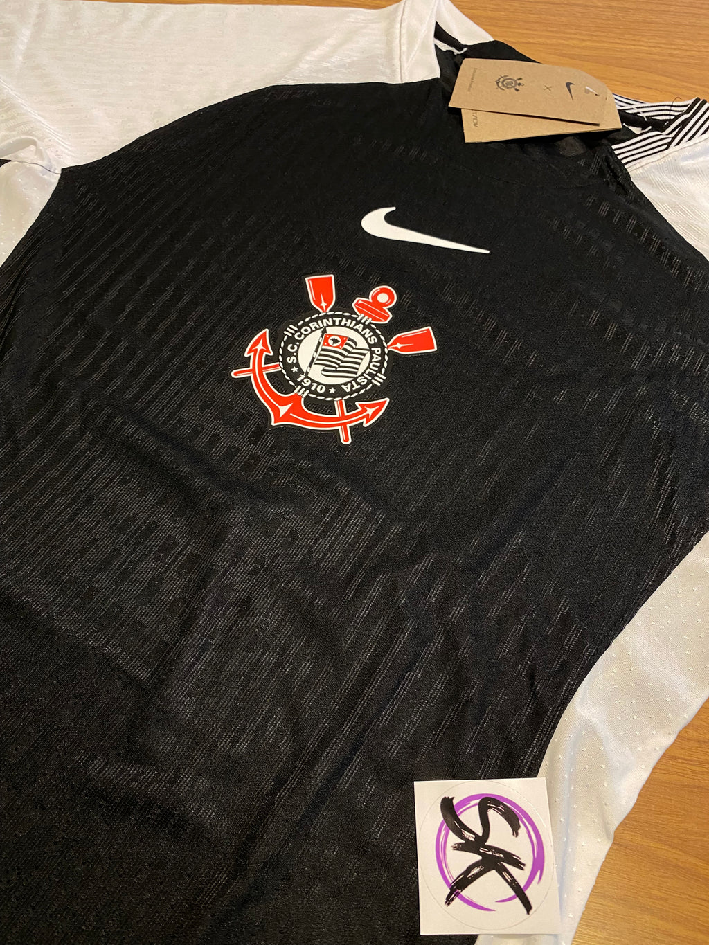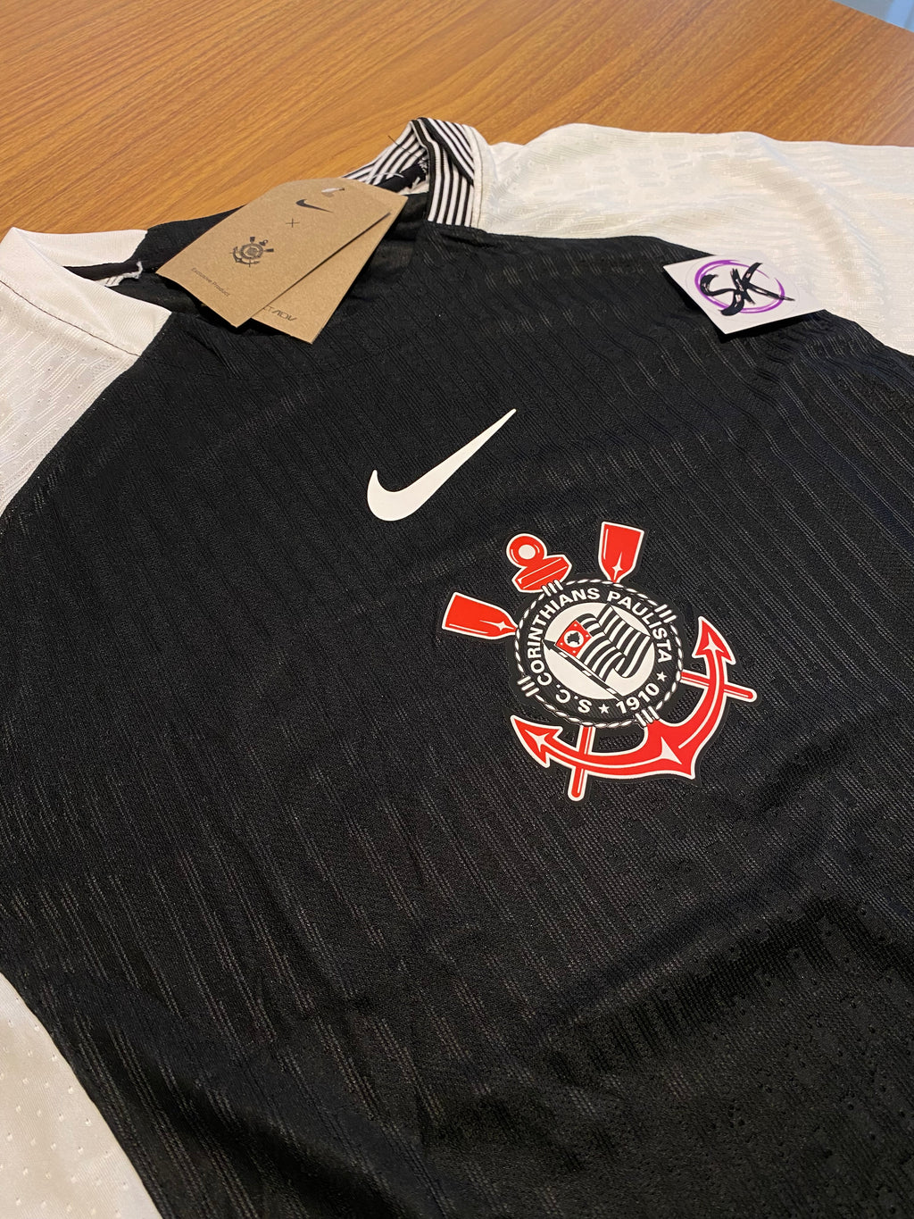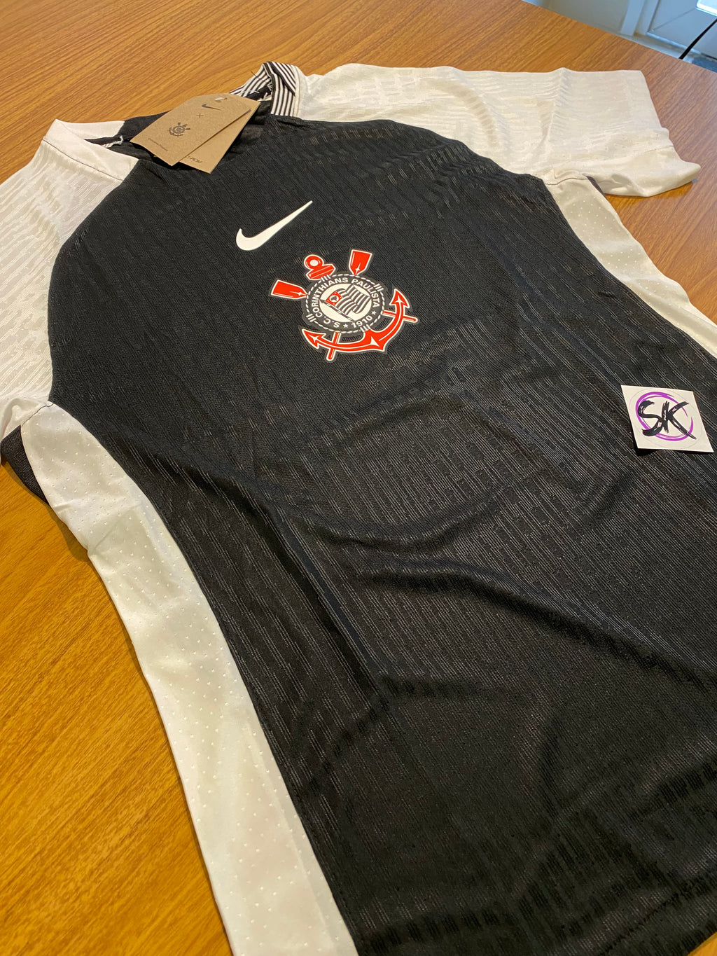 Inspirada no mundial de 2000, a nova camisa II do Corinthians é inteiramente preta, com as áreas do ombro em branco, e o escudo do Corinthians e o swoosh centralizados no peito, em referência à icônica camisa campeã mundial. Dentro da gola, à altura do pescoço, um emblema com a inscrição "Todo Poderoso Timão" homenageia o grito que ganhou popularidade durante a competição e empurrou o Corinthians rumo ao título.