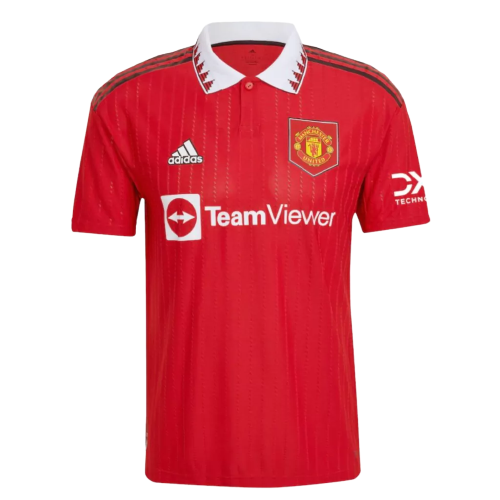 A camisa titular do Manchester United é, segundo o time, uma homenagem a rica história dele e uma homenagem a alguns dos kits e jogadores mais lendários do clube. Ele tem o tradicional vermelho como predominante e diversas linhas verticais no corpo, formadas por três listras versão mini, em relevo.