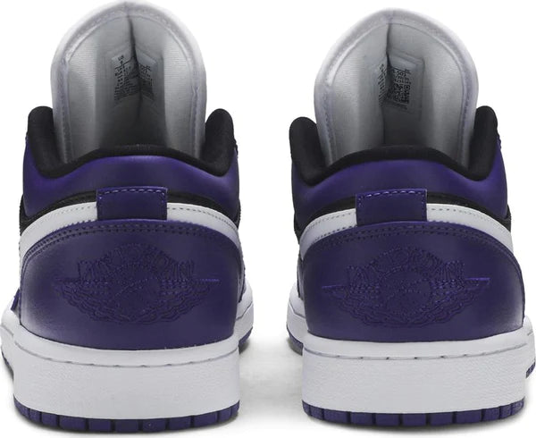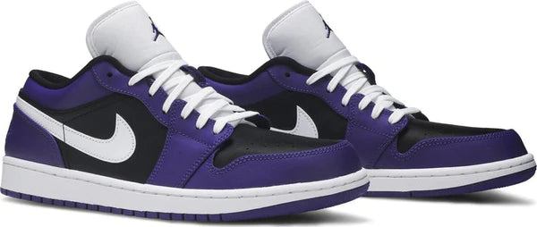 O Air Jordan 1 Low 'Court Purple' oferece uma colorway simplista de dois tons da silhueta clássica. A parte superior toda em couro ostenta uma base preta com sobreposições violetas contrastantes e um Swoosh branco nítido. O logotipo retrô Wings da Jordan Brand é bordado em tom na sobreposição do calcanhar, enquanto um ícone Jumpman adorna a língua de nylon branca. Uma unidade de sola Air encapsulada fornece amortecimento aprimorado sob o calcanhar.