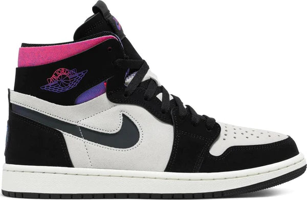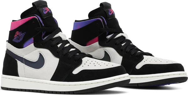 O Paris Saint-Germain x Air Jordan 1 High Zoom Comfort ‘Paris’ apresenta cores vibrantes em um esquema de cores neutro. A parte superior de camurça esbranquiçada é acentuada com sobreposições de nobuck preto e um acabamento iridescente refletivo no Swoosh cortado. Uma mistura de tons fúcsia e violeta pousam na gola desconstruída e no logotipo clássico dos Wings, juntamente com um escudo circular no calcanhar que reconhece o PSG, o clube de futebol profissional francês. O amortecimento leve chega por meio de uma entressola de espuma com amortecimento Zoom Air no calcanhar, ambos alojados em um suporte de borracha.