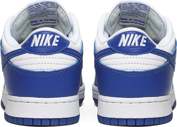 Comemorando o 35º aniversário da silhueta, o Dunk Low Retro SP 'Kentucky' empresta um esquema de cores familiar da lendária série 'Be True to Your School' da Nike de 1985. O tênis de basquete de cano alto originalmente feito para a Universidade de Kentucky é atualizado como um cano baixo versátil, com cabedal de couro branco com sobreposições em azul royal. Uma língua de malha respirável é coberta com uma etiqueta da Nike tecida, complementando um segundo logotipo da Nike na aba do calcanhar.