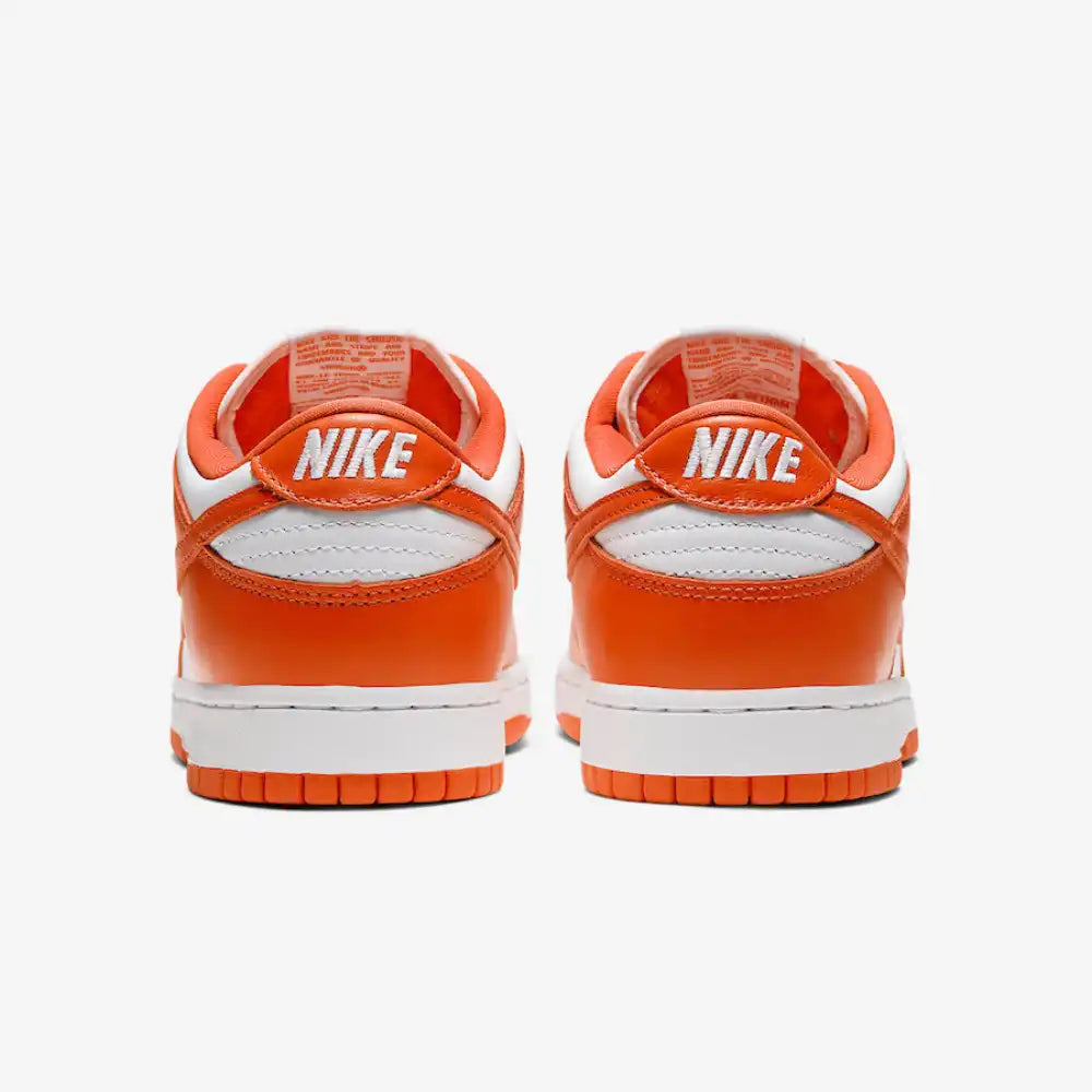 Visto pela última vez em 2016 como parte da série de "Be True" College Run, a cor "Syracuse" retornará desta vez como parte para comemorar o 35º aniversário do Dunk. O Nike Dunk Low apresenta uma parte superior de couro branco com sobreposições laranja. O laranja continua nos cadarços, a marca Nike na tag da língua e a sola de borracha completada com uma entressola branca.