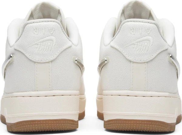 A colorway 'Sail' do Air Force 1 de Travis Scott representa a segunda colaboração do rapper de Houston com a Nike na silhueta clássica. Além de trocar o acabamento todo branco de seu antecessor por um Sail um pouco mais escuro, o novo modelo permanece praticamente inalterado. A construção em tela tonal é acentuada com Swooshes removíveis e remendos de língua, enquanto as joias de renda brilhantes dão um aceno à grade de assinatura de Scott.